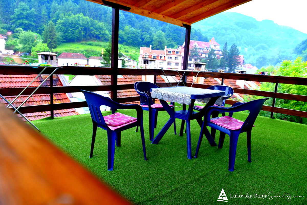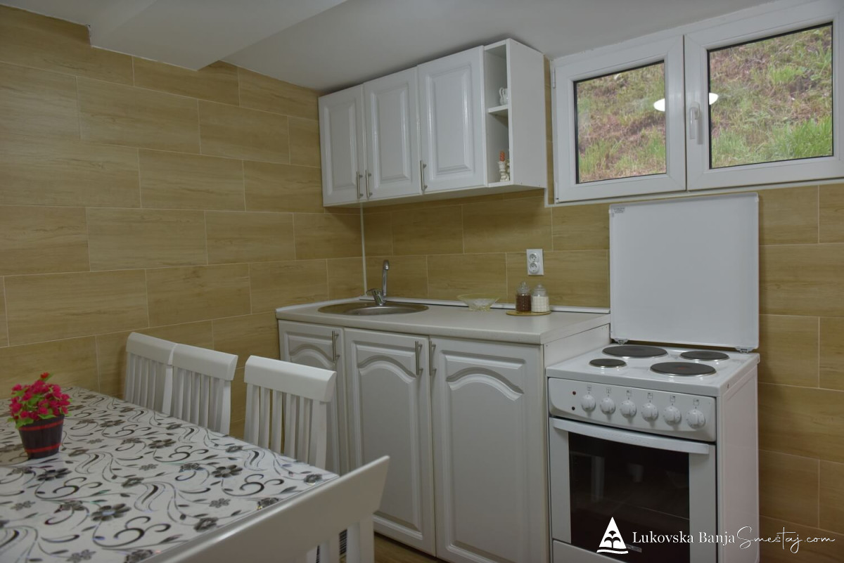Raspolaže sa 2 sobe - dvokrevetne - svaka soba ima kupatilo, TV sa kablovskom televizijom i besplatan internet, zajedničku kuhinju i terasu gde gosti mogu da se opuste, roštiljaju i uživaju u predivnom pogledu.