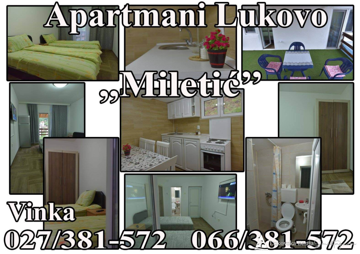 Potpuno novi studio "Miletić" nalazi se u prizemlju i može primiti dve osobe. Studio se sastoji od kuhinje, kupatila, dva standardna kreveta, TV sa kablovskom televizijom, besplatan internet i terasu.