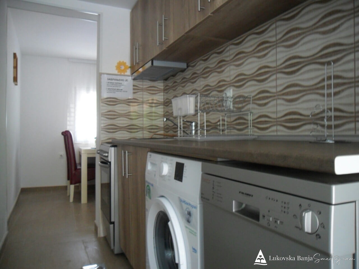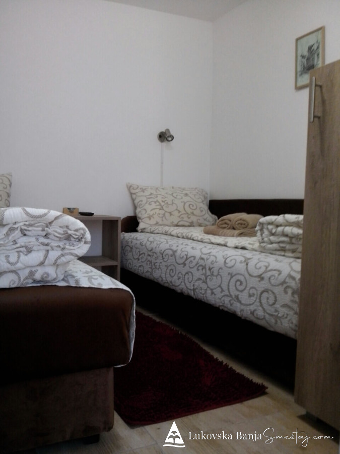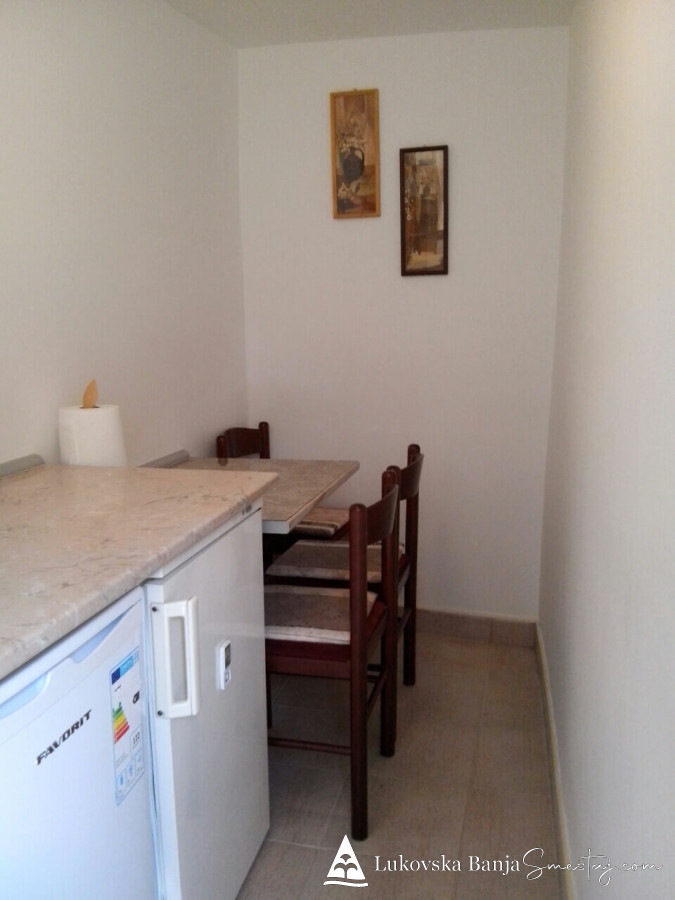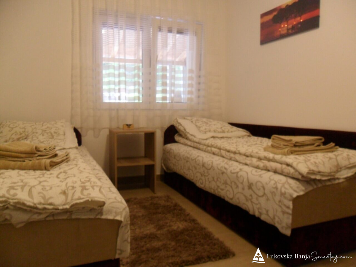 Raspolaže sa 2 sobe u prizemlju. Svaka soba ima sopstveno kupatilo i zajedničku kuhinju koja je izdvojena kao posebna prostrija.