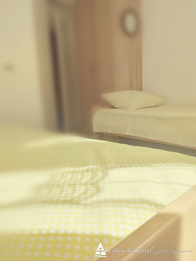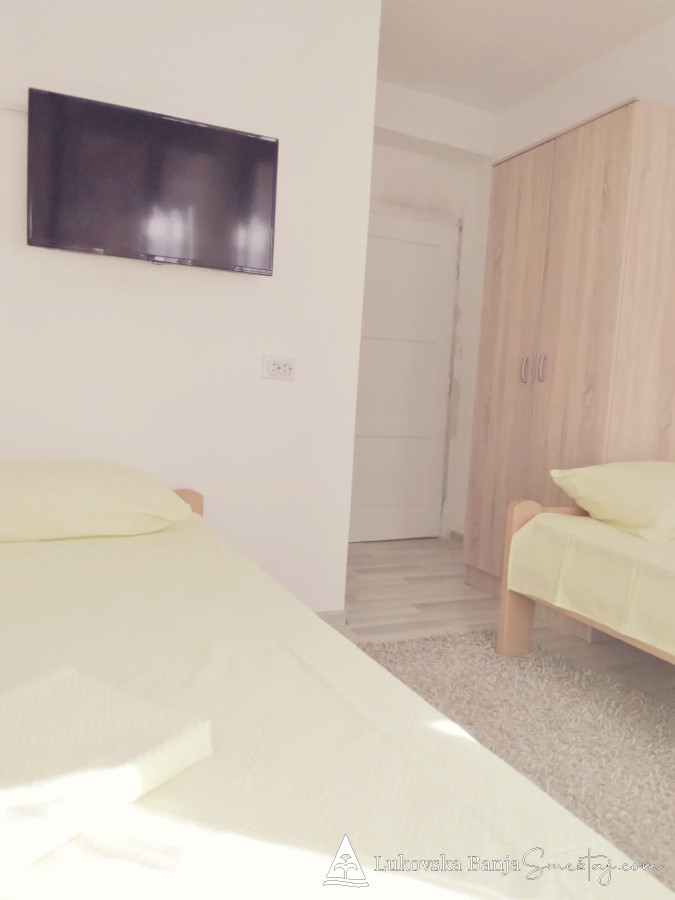 Sobe su dvokrevetne, moderno opremljene sa kupatilom, sadrže kablovsku TV, bežični internet.