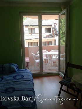 Dva dvosobna četvorokrevetna apartmana ili četiri dvokrevetne sobe, sa uptrebom kuhinje i kupatila, (dve sobe jedna kuhinja, jedno kupatilo), na drugom spratu, sa velikim terasama, pogled na centar, 10 m od recepcije hotela Kopaonik, tv, trgovina 50 m, novogradnja...